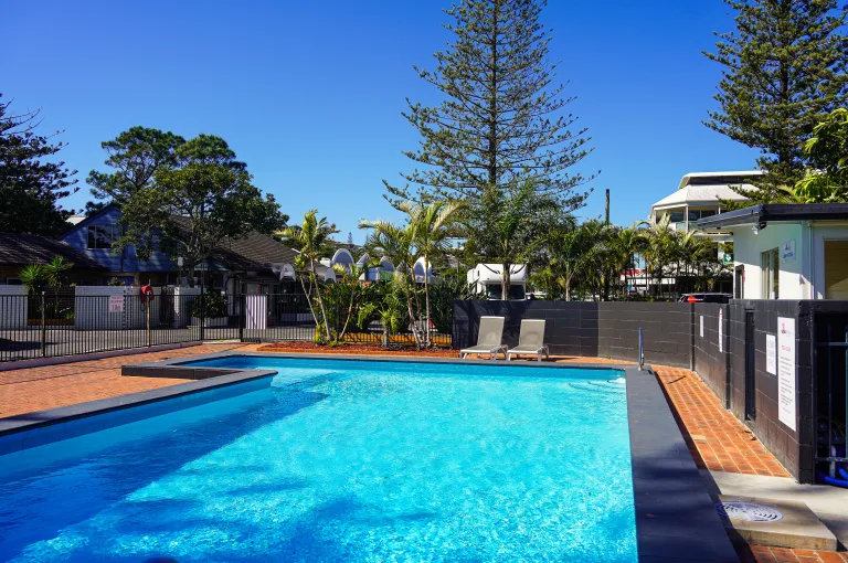 You will find a range of accommodations on offer at Calypso Yamba Holiday Park, including cabins, units, and powered and unpowered sites. The park also has a range of amenities and facilities including a swimming pool, BBQ areas, a fully fenced playground, a communal camp kitchen, and laundry facilities.