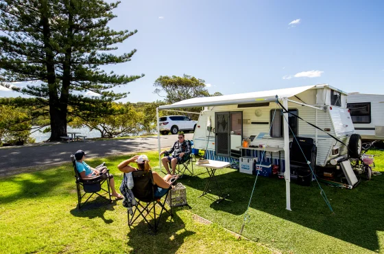 The park offers a variety of powered sites, many with river views. There is an open communal camp kitchen and the sites are generously sized to accommodate a range of different vans and vehicles.